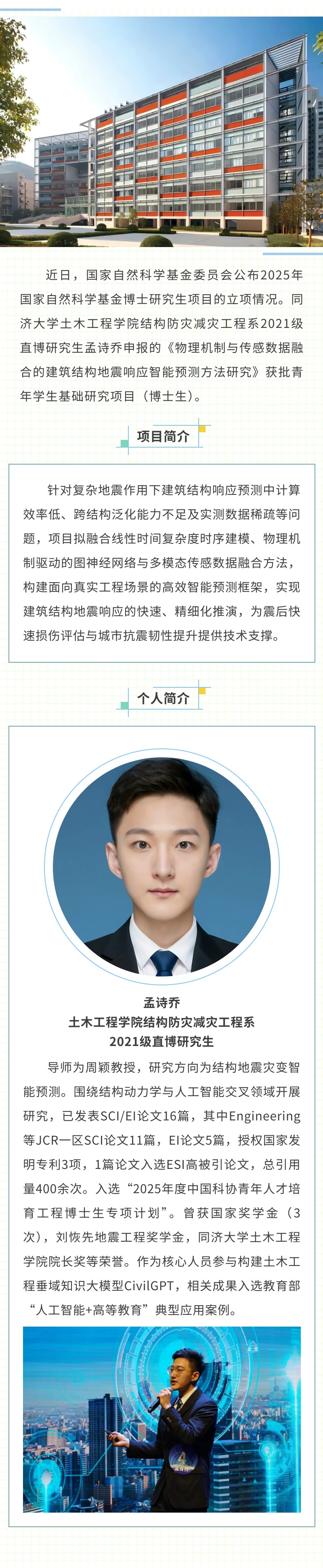祝贺!我系博士生孟诗乔获批2025年国家自然科学基金